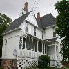 - the one-and-a-half-storey rectangular massing with its the steeply-pitched gabled roof, stone chimney and dormer windows of different sizes;