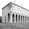 The Barrack at the Fort Lennox National Historic Site of Canada is the dominant and the largest structure along the west side of the parade ground. Locally known as ‘The Big Barracks’, the imposing scale of the stone façade is emphasized by its frontispiece, which is surmounted by a pediment. Other distinctive features are the symmetrical composition, the regular spacing of openings, the hipped roof with five chimneystacks, the loopholes, and the imposing exterior stairway on the rear wall. The designation is confined to the footprint of the building.