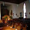 - interior elements such as open hearth and bake oven; trap door to cellar with original hardware; massive chimney foundation in cellar; short rear entry door; and narrow four-over-four horizontal-slider window beside rear entry.