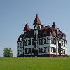 - all ornamental Victorian elements, such as roundheaded romanesque windows on the second storey with bracketed moulded hoods and ornamental keystones, decorative shinglework, fretsawn cresting and finials on the roof.
