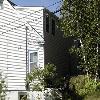 - wood shingle cladding, with plain wooden corner boards;