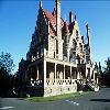 - its characteristic Queen Anne details, such as the windows with a large central pane of glass surrounded by smaller coloured panes and the sunburst motif mouldings in the gables