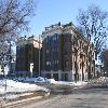 - the functional three-storey wood-frame structure with a rectangular plan and boxy massing