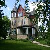 - the additional vertical emphasis given to the design by Perpendicular Gothic elements, such as the projecting three-storey gabled bay and the high-peaked front dormer with metal coping, and by the raised limestone foundation and tall brick chimney