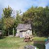 - details such as the plain wood trim around windows and doors, steep loft stairway, handcrafted wooden benches, altar and other holy tables, a candle chandelier, framed icons, etc.