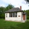 - the restrained, graceful exterior finishes, including horizontal siding painted white and playful detailing found in the bargeboards, an arched element under the front gable end and the bases of the smaller domes