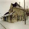 - the unadorned horizontal wood siding and trim, rough stone foundation, brick chimney, etc.