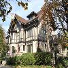 -the pitched roofs of the main building and the annex, covered with wood shingles;