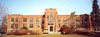 -le vocabulaire architectural moderne plus conservateur du bâtiment comme illustré par les colonnes de brique et les panneaux des murs-rideaux encadrés;