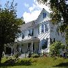 - large windows with designs including round-arched and vertical sliding sash trimmed with keystones;