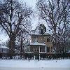 - son emplacement à l'angle sud-ouest de la rue Russell et de l'avenue Louise dans le quartier est de Brandon, placée en arrière d'une clôture basse en brique et entourée d'arbres adultes sur une parcelle paysagée