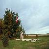 - le vaste terrain gazonné à l'ouest de la rue Bradburn, au bout de l'avenue Mountain, à Darlingford, la façade orientée vers l'est et la cour d'école, à l'ouest, bordée de grandes épinettes;
