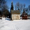 - le fenêtrage symétrique caractérisé par des fenêtres sur trois côtés avec entourage de bois en ogive, et par une porte d'entrée centrale avec couronnement triangulaire;
