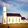 The Farmers' Bank of Rustico is a two-and-one-half storey Prince Edward Island sandstone building with a slate roof in the British Classical architectural style.