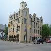 - buff brick with contrasting polychrome quoining